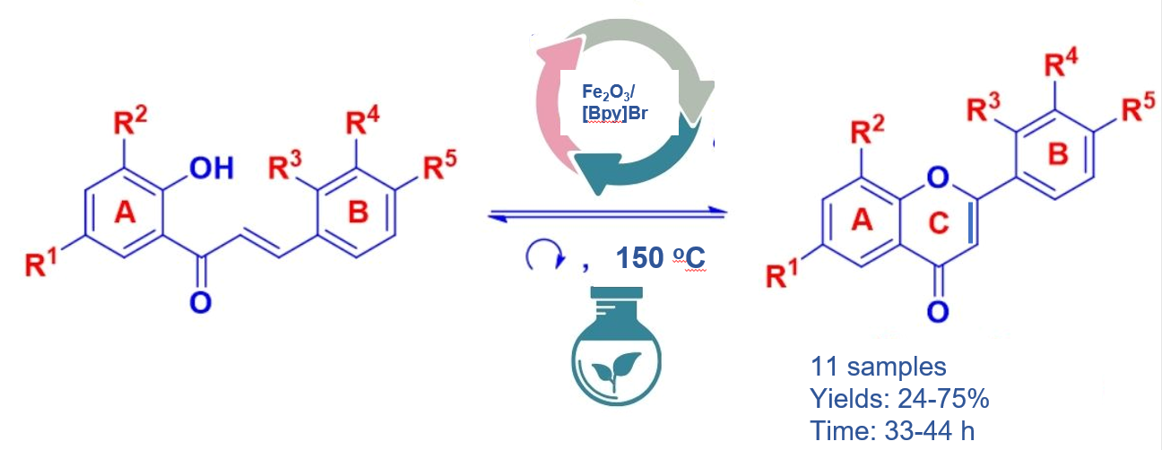 13. | Hình ảnh giới thiệu kết quả (1-2 hình tiêu biểu) | – Nội dung 1: Nghiên cứu quy trình tổng hợp xanh của 2-amino-1,3-thiazole. – Nội dung 2: Nghiên cứu quy trình tổng hợp xanh của thiazolo[3,2-a]pyrimidine. – Nội dung 3: Nghiên cứu quy trình tổng hợp xanh của các dẫn xuất flavone.