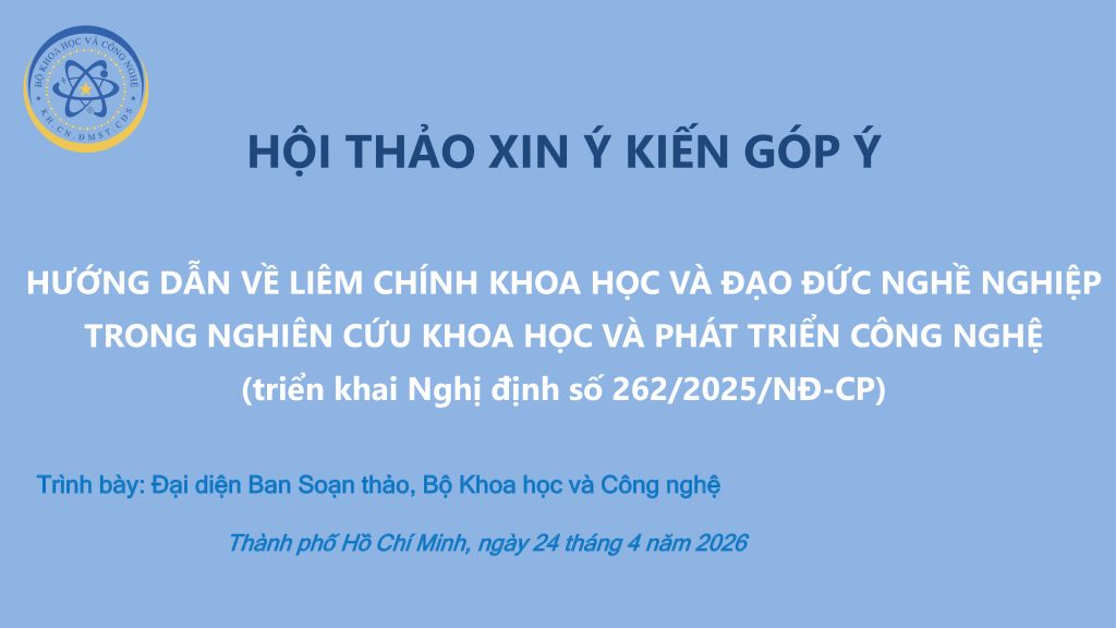 Ngày 24/4/2026, Vụ Khoa học Xã hội, Nhân văn và Tự nhiên, Bộ Khoa học và Công nghệ phối hợp với ĐHQG-HCM đã tổ chức Hội thảo xin ý kiến góp ý dự thảo Hướng dẫn về liêm chính khoa học và đạo đức nghề nghiệp trong nghiên cứu khoa học và phát triển công nghệ.